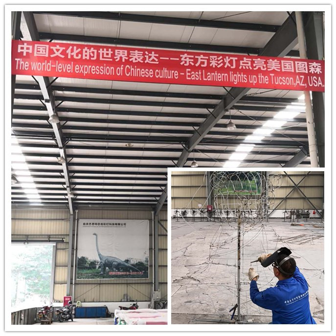 盛夏的八月,驕陽似火,東方彩燈出口基地一派繁忙。“東方彩燈 點亮世界”系列項目之--美國圖森“世界之光-彩燈嘉年華”大型燈展燈組國內(nèi)后期制作正井然有序的進行。燈展裝箱發(fā)運預(yù)計于8月中旬完成。