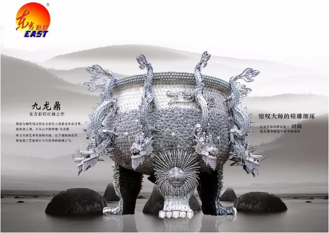 東方彩燈人構(gòu)思與制作的過程用著光年在計(jì)算,漫長(zhǎng)的工期,只為心中的夢(mèng)想——九龍鼎,樹立全新藝術(shù)作品的奇跡,近乎偏執(zhí)的追求,繁復(fù)的工藝展現(xiàn)出與生俱來的磅礴之氣。