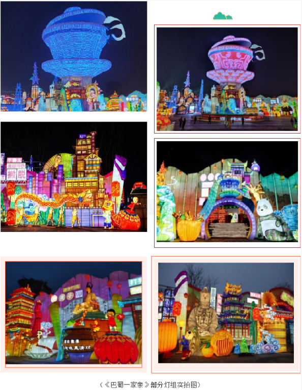 今年,自貢·中華彩燈大世界以“觀自貢燈 過中國年”為主題,550畝展區(qū)、十五大主題、上百組彩燈,給游客們帶來一場自貢彩燈文創(chuàng)新紀(jì)元的視覺盛宴。有800多年歷史的自貢燈會,開啟全新云時代,將自貢燈會打造成展現(xiàn)時代風(fēng)貌的大舞臺,讓您足不出戶也能領(lǐng)略“天下第一燈”的魅力!由燈貿(mào)集團(tuán)創(chuàng)意、設(shè)計(jì)團(tuán)隊(duì)等數(shù)百名彩燈匠人歷時兩個多月精心打造的《巴蜀一家親》、《自貢記憶》、《五糧液》三個大型燈組?!栋褪褚患矣H》薈萃川渝各城風(fēng)貌之靈光,主體以獨(dú)具特色的川渝茶文化代表——蓋碗茶為載體,現(xiàn)代透光材質(zhì)制作憨態(tài)可掬的熊貓,下方高鐵環(huán)繞而行,輔以巴蜀特色元素,將自貢傳統(tǒng)彩燈制作工藝與新技術(shù)相結(jié)合,為游客帶來可看、可聽、可聞的沉浸式的觀燈體驗(yàn)。