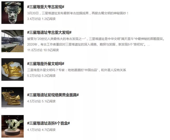 有關“三星堆”的話題上了熱搜