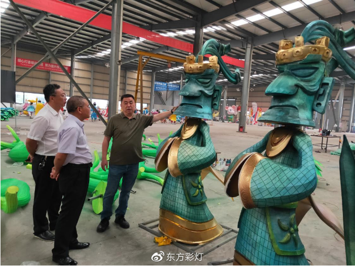 燈貿集團執(zhí)行總裁陶建軍陪同督導組一行參觀了東方彩燈(出口)基地,觀摩彩燈制作過程,全面了解了彩燈工藝流程,詳細匯報了該項目的建設進度情況,并向督察組一行詳細介紹了燈貿集團三十一年發(fā)展歷程及未來發(fā)展規(guī)劃和思路。