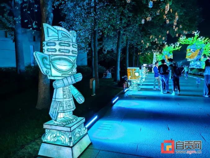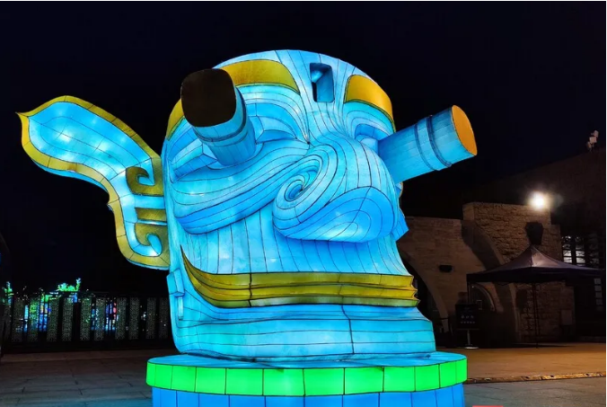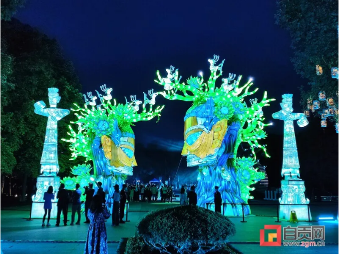這次燈展由中青旅聯(lián)科策劃、自貢燈貿(mào)集團(tuán)打造,設(shè)計(jì)靈感都來(lái)自于三星堆實(shí)體文物、考古發(fā)現(xiàn),包括包括青銅大立人、青銅縱目面具、青銅神樹(shù)、黃金面具、青銅神鳥(niǎo)等。